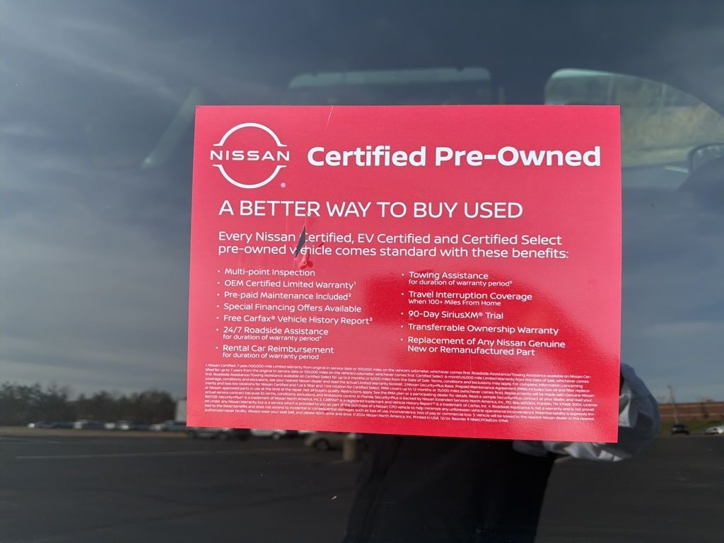 * 7 Year/100,000 Mile Limited Warranty, 24/7 Hour Roadside Assistance, Carfax Vehicle History Report, Plus 1 Year Pre-Paid Maintenance Included. Gas Powered Nissan Models Only.